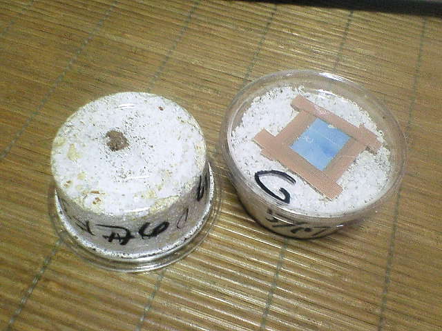 さて先日オオクワをプリンカップに投入したわけですが、ひっくり返してみると食痕が見えます。底から食べ進んでいくわけですね。そうこうして約三分の二程度まで食べ進んだら菌糸ビンに移すのですが、そこまでいけるのは全部というわけではないんです。