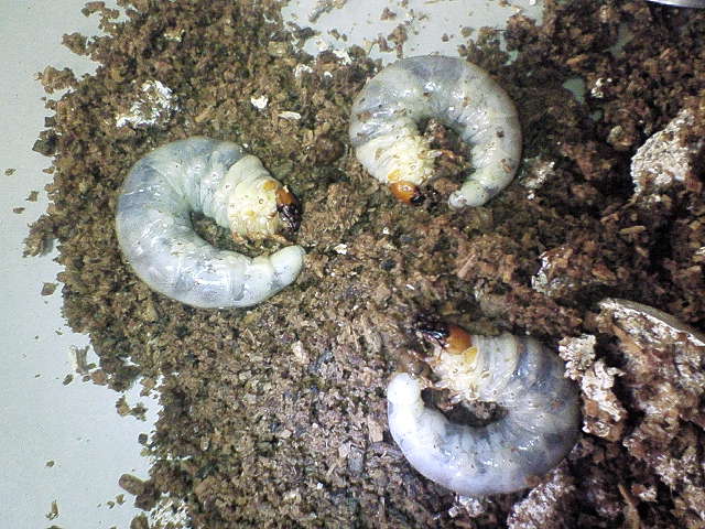 ちょっと比較対象が微妙なのですが、分かりますかね?オオクワ幼虫・・・とまでは流石に行きませんがこれが成虫になったら、少なくとも小さいムシにはならないでしょう。