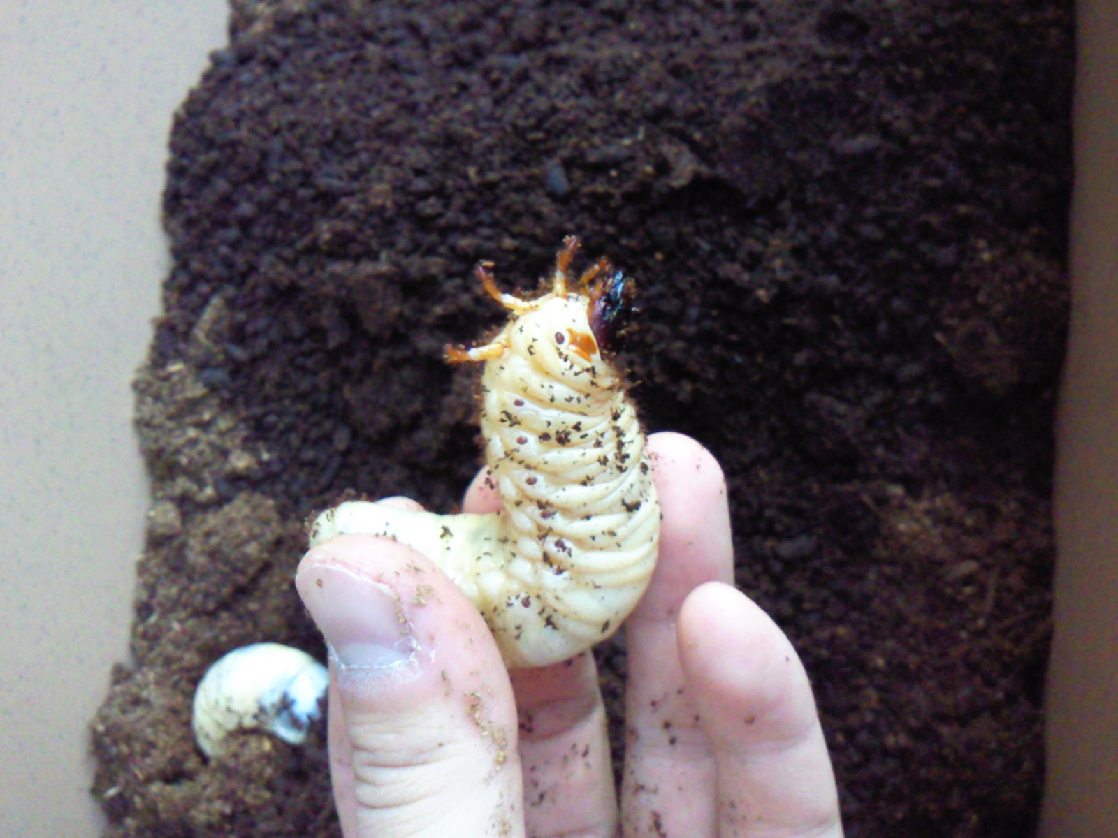 ケースをひっくり返すとごろごろと幼虫たちが出てきます。まだ動きは鈍いですが丸々と太っていますね。実は今晩の有ご飯がエビフライとのことなのですが、・・・実は私かぶとをいじって数日間はエビだめなんですよね。フライならともかくエビチリは完全にアウトです。頭をとったかぶとの幼虫にしか見えなくて///