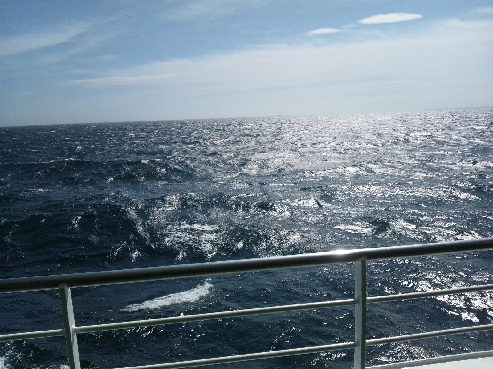 蛤を食べ過ぎてフェリー出航ぎりぎりの時間になってしまい、誘導の係員に注意されながら乗船。房総半島を離れて三浦半島に向かいます。