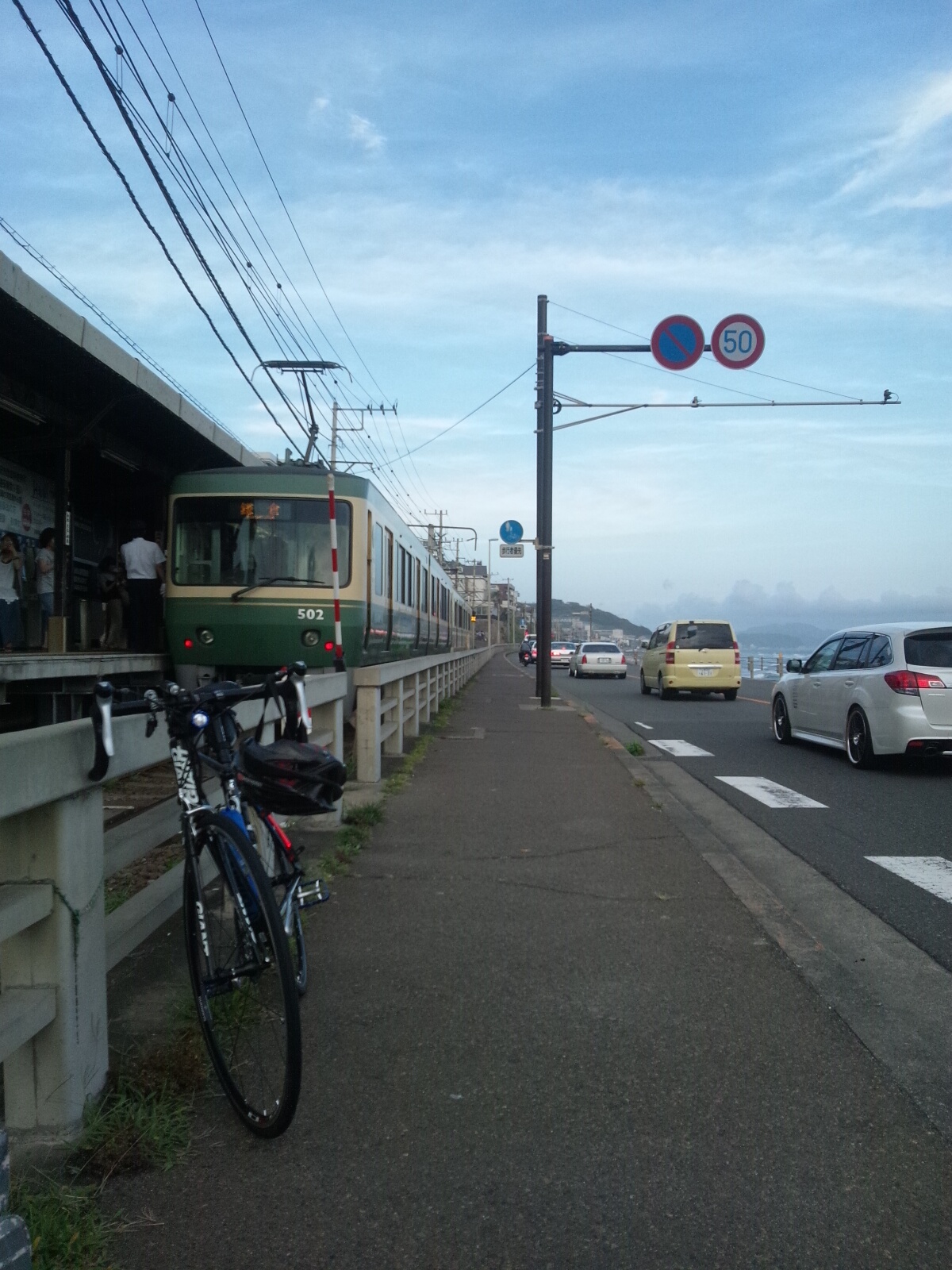 腰越の併用軌道部分で、江ノ電と競争したりもしました(勿論安全に留意して)。勝ちましたww