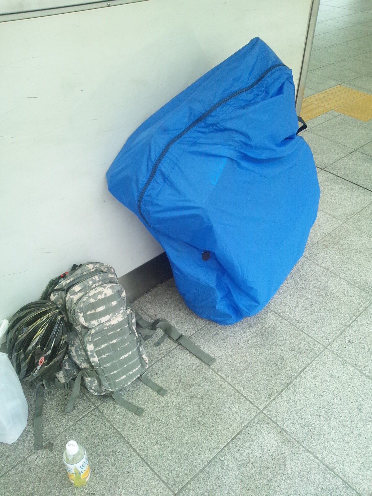 終点の上総中野駅に到着したら分解状態のロードバイクを組み立てて出発!