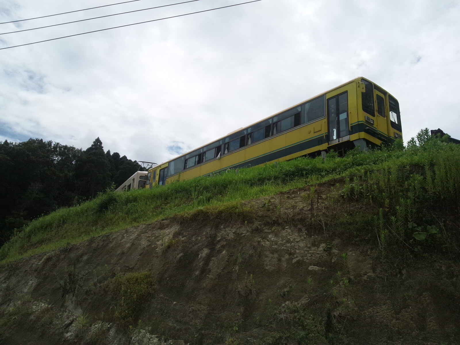 違和感のある風景ってありますよね?例えば、樹木にカブクワがくっついていたら直ぐに気づきますし、定期券の日付が切れていたら呼び止めますよね?おおむねそんな感じです。自転車で走っていたら崖の上の汽車・・・違和感有りまくりです。