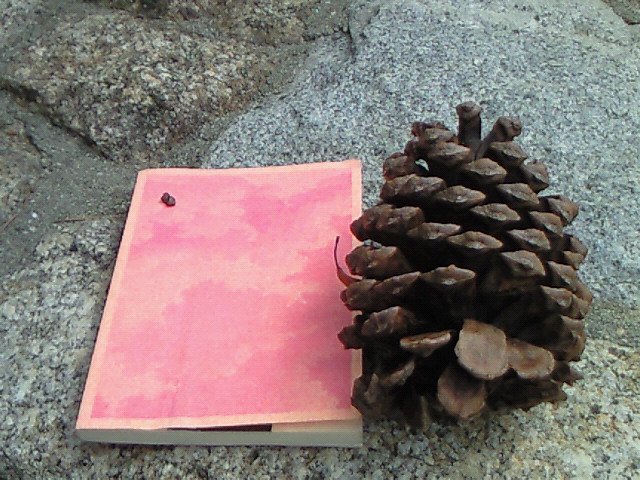 ありえないくらい巨大なまつぼっくりを見つけました。左の本が普通の文庫本ですから・・・ね(汗