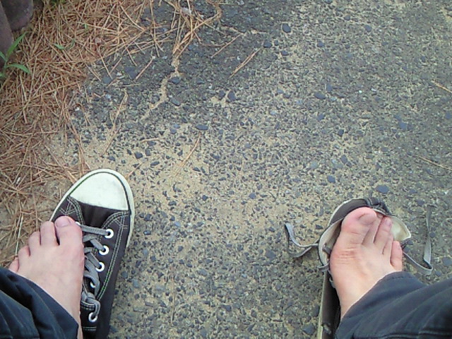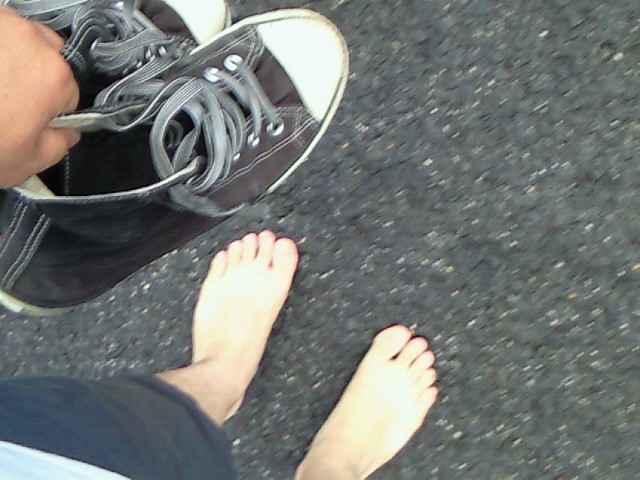 えぇ、最悪ですとも。 アスファルトの上の茶色い物全部私の靴の中に入っていた砂です。