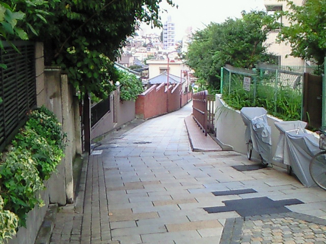 ま、いつも通り坂道ですね。時間にして朝の7時くらい、東京のほうは雨が降っていたらしく、湿度が高かったです。