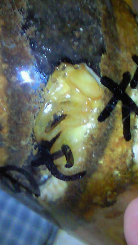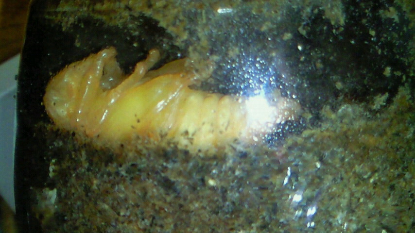 今朝の段階で、コクワの♀(と思わしきもの)が蛹になっているのを発見しました。・・・らしきものってのは、大きさがコクワの♀を超越しているから(汗