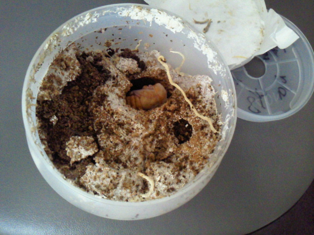 それまでちょ~っと菌糸の劣化が怖いで心配ですが、最終手段は人工蛹室もあるので、その準備だけはしておこうかと思います。1100CCボトルを目一杯使うほどの大きさの蛹室です。