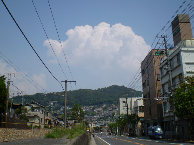 国道2号線にそって西国寺に向かう交差点まで少し歩きます。入道雲が綺麗でした・・・