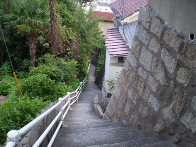 で、そこに行くまでの道と鳥居です。「ふたり」のふたりはこのかいだんから落ちたんでしたっけ?ほんきで落ちたら死にますから(汗