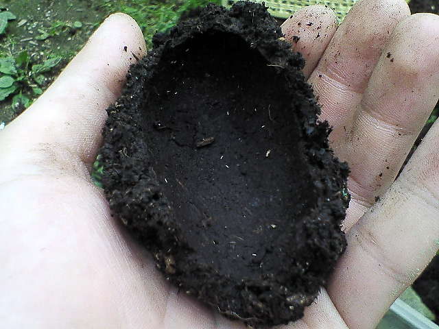 暴いた蛹室です。見事な楕円、中もツルツルです。やっぱ昆虫って凄いですよね!完全変態するたの部屋をこんなに見事な楕円形に作ってしまうんですから!