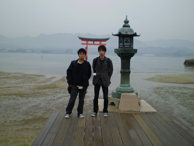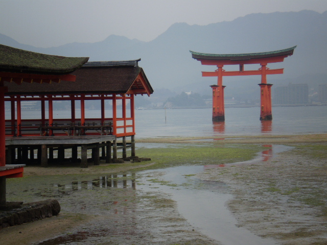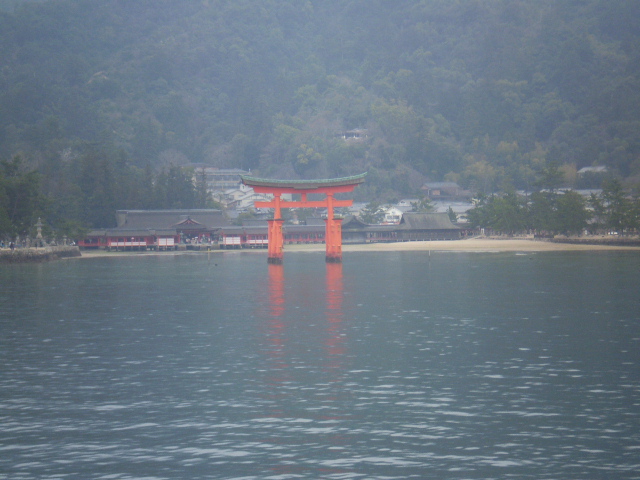 これが有名な鳥居ですね。聞く所によると、海の中に足が差し込まれているのではなく自重のみで礎石の上に立っているのだそうです。日本人って器用ですね(笑