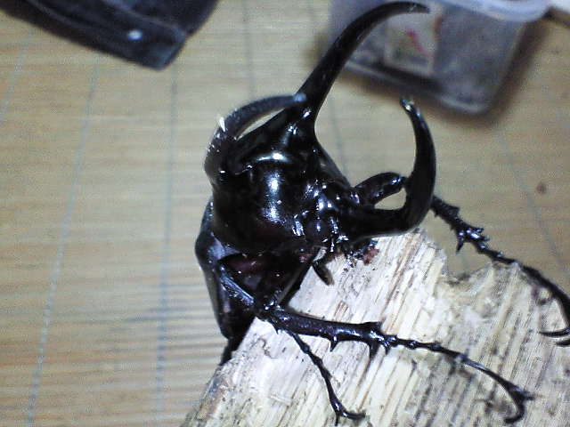 ついでにオス君です。角の具合からみて(買ったときのラベルにもありましたが(笑))スマトラ産らしいです。国産しか見てなかった人間にとって見るとこの角は不思議ですねぇ(笑