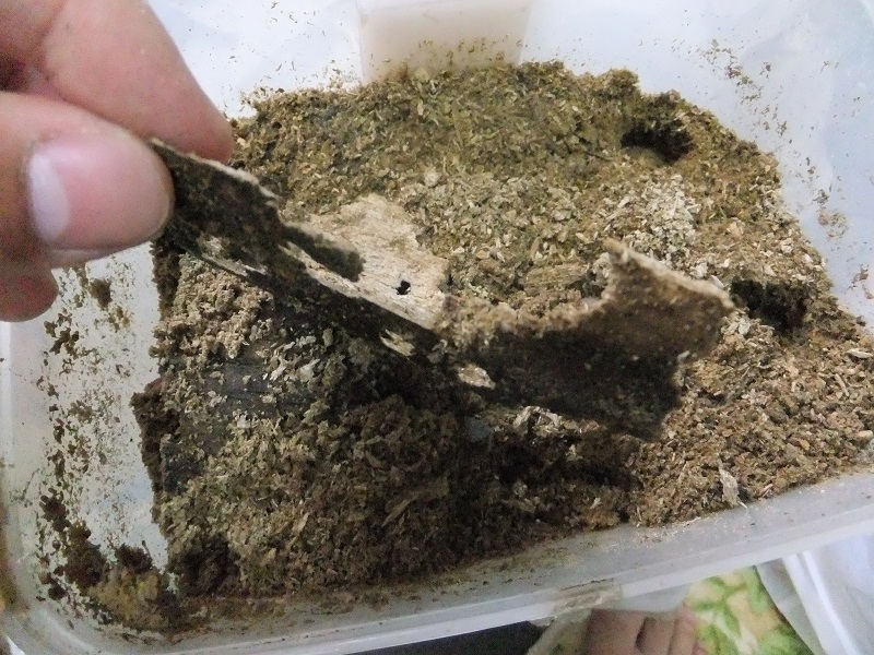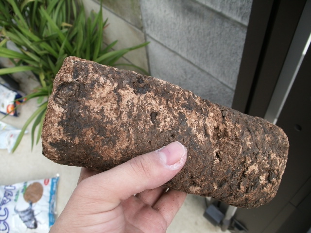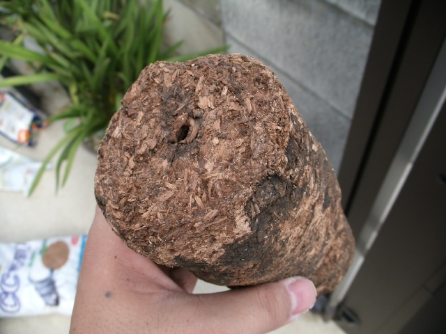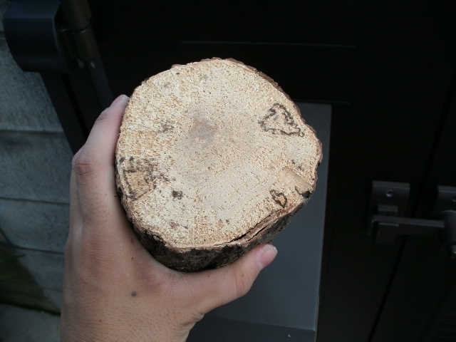 ↑産卵木です。大きさは私の手と比較していただければ分かりますが、なかなかに大振り。断面だけ見る限りでは材の質もそこまで悪くはありません。かねだいですとこれより一回り細くて498円とかありますからね~