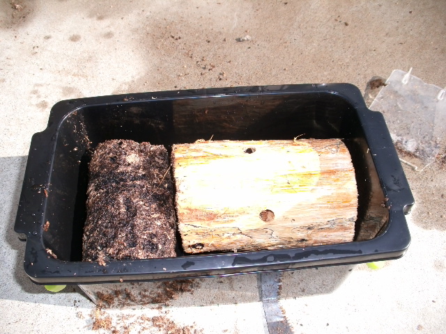 ダイソーの100円均一で見つけた「200円」の産卵木と、菌糸を圧縮させた産卵床だそうです。